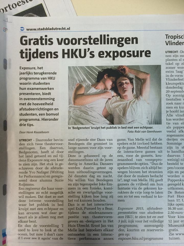 A very local paper has picked out Exit, Pursued By A Bear as one of its three tips on what to watch out for during all the final expositions. Which is nice.